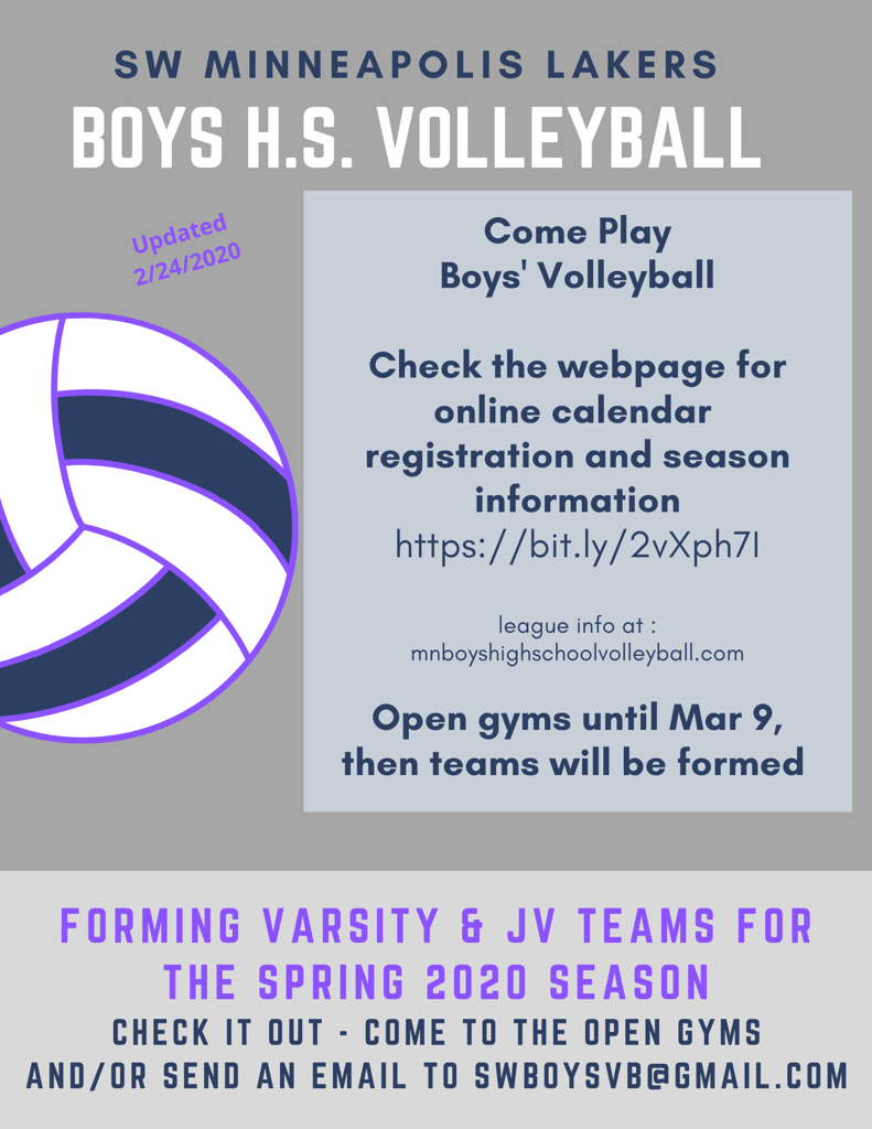 Finally, a registration fee of $75 is requested for each player to partially offset the costs of the season. Please make checks out to Minneapolis Southwest Boys HS Volleyball and turn them into one of the coaches or managers ASAP.